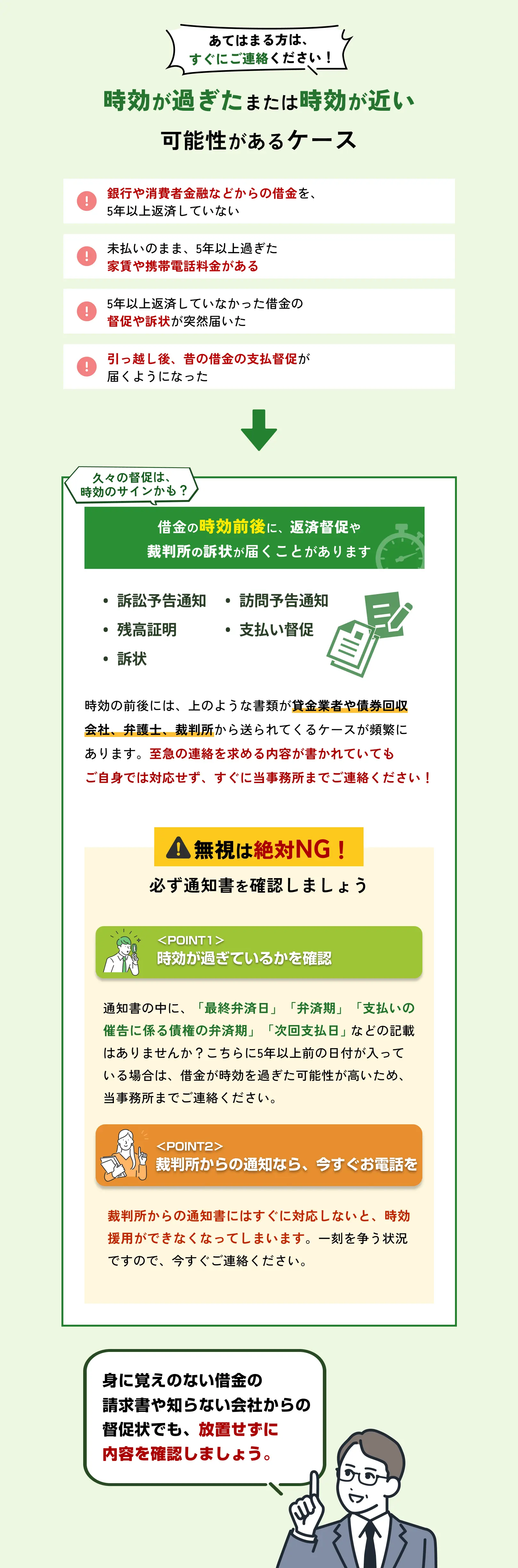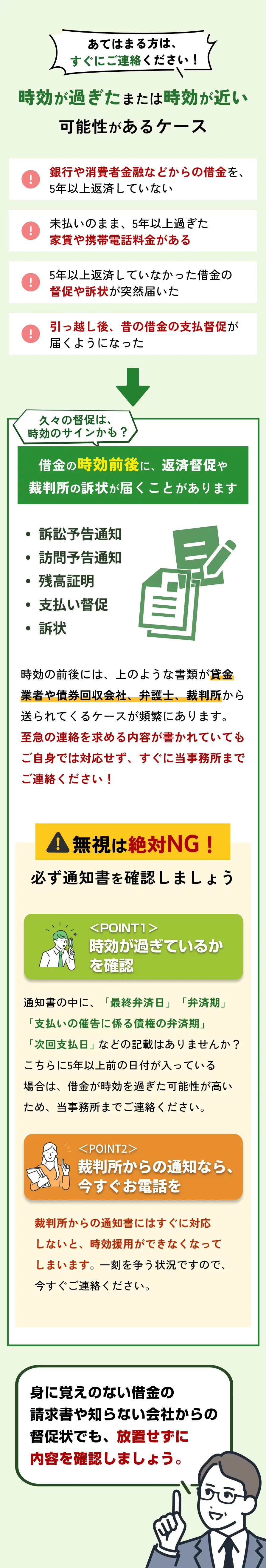まずは、お電話でお問い合わせください。ご相談者様の借金が時効なのか、どうやって調べるのかをわかりやすくご説明いたします。