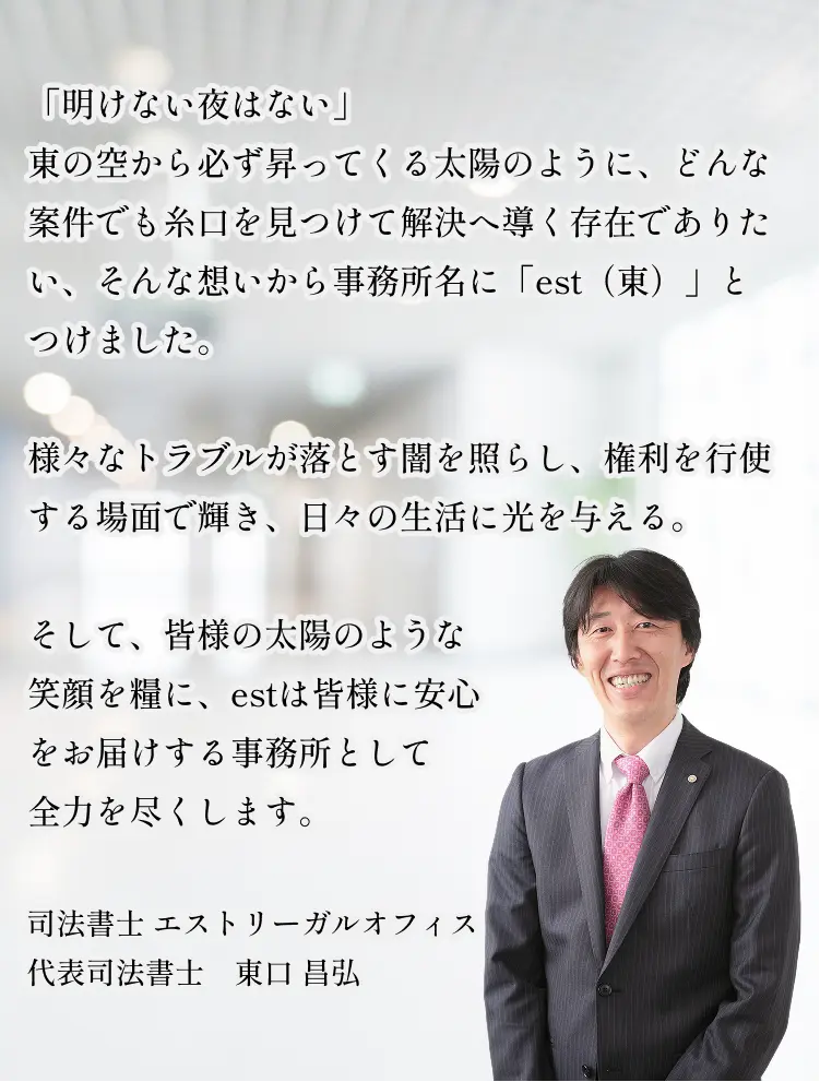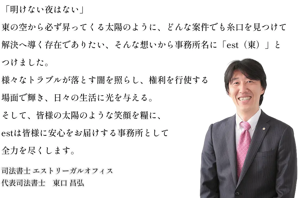 | 事務所名 | : | 司法書士 エストリーガルオフィス |